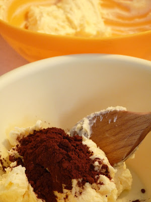 Najskôr natrieme bledou a potom kakaovou plnkou.