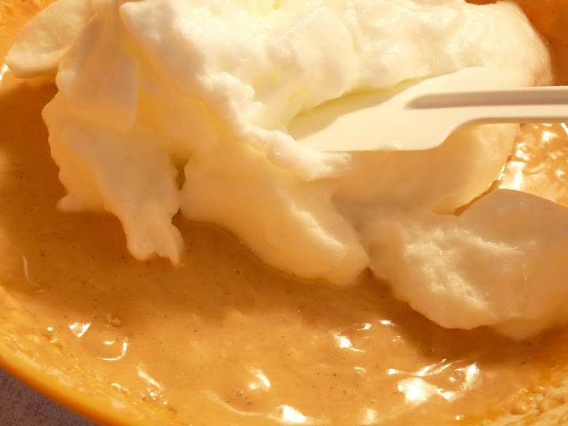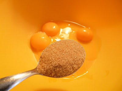 Z bielkov vyšľaháme tuhý sneh. Tri celé vajcia odvážime (aj so škrupinami), koľko budú vážiť, tak toľko treba odvážiť aj múky (vážili 177g, tak toľko pridať aj hladkej múky) Žĺtky vyšľaháme s cukrom.